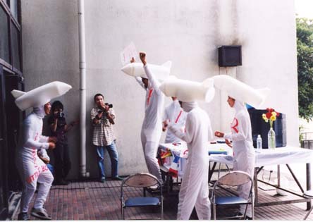 この作品はミサイルが自らの意思を持って自分達の存続を話し合うパフォーマンスで、授業形式で、道徳、音楽、体育が行われた。