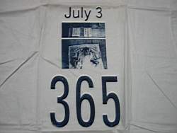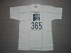 95年−96年にかけて全国をキャラバンで回った『365大作戦』記念Tシャツ。 写真は開発本人のO歳の俯瞰写真と、命名された半紙に書かれた名前がプリントされています。 古いため多少の染み有り。