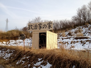 現在常磐道が開通し、南相馬インターからが便利となりました。 当初は東京からは東北道を使い福島インターから全村避難した飯館村を通過しての道しかありませんでした。 100キロほど遠回りになってしまいます。 政治家の家はこの飯館村での経験が基盤になっていますので、お時間があるかたは福島周りで行きか帰りに 走って頂けると、よりそれぞれが現在抱えている問題について思いを巡らすきっかけになるかと思います。