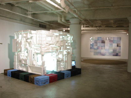 今回の会場の作品は円、三角、四角で構成してあります。 これは、18世紀の臨済宗の高僧、仙高ェ茶の湯の精神の規範となる禅の精神を この形の意味として表されているのが人間社会であり、それぞれの形が共存共栄