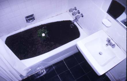 | 彼女 1999年 作品:椿と風呂 素材:風呂桶、植物、土 サイズ: 会場:Westbeth Apartment, NEW YORK,USA |