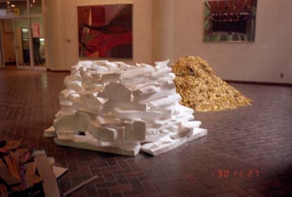 また1947年にアメリカのスタイルフォーム社によって開発されたこの素材は腐敗する事がなく、社会の比喩としてこの素材を選んだ。