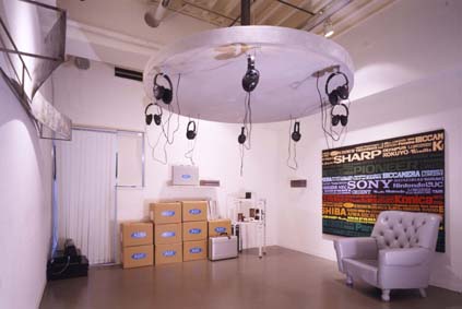 展覧会場の真ん中で、回転するヘッドフォンを耳にし、その運動に身を任せながら会場を鑑賞するように設置。(音は電車と鯨の鳴き声とART DEVELOPMENT