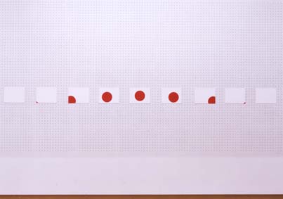 中央の絵は日本の国旗のデザインをしていますが、それ以外は赤丸を中央からずらしてあります。 私達は義務と責任という社会の中にあって一見それが普遍的な価値であるように思われますが、この国旗のようにデザインが変わっても日本という認識をできるのです。 この作品はイラク戦争時に派兵問題によって憲法第09条の解釈問題などから製作しました。